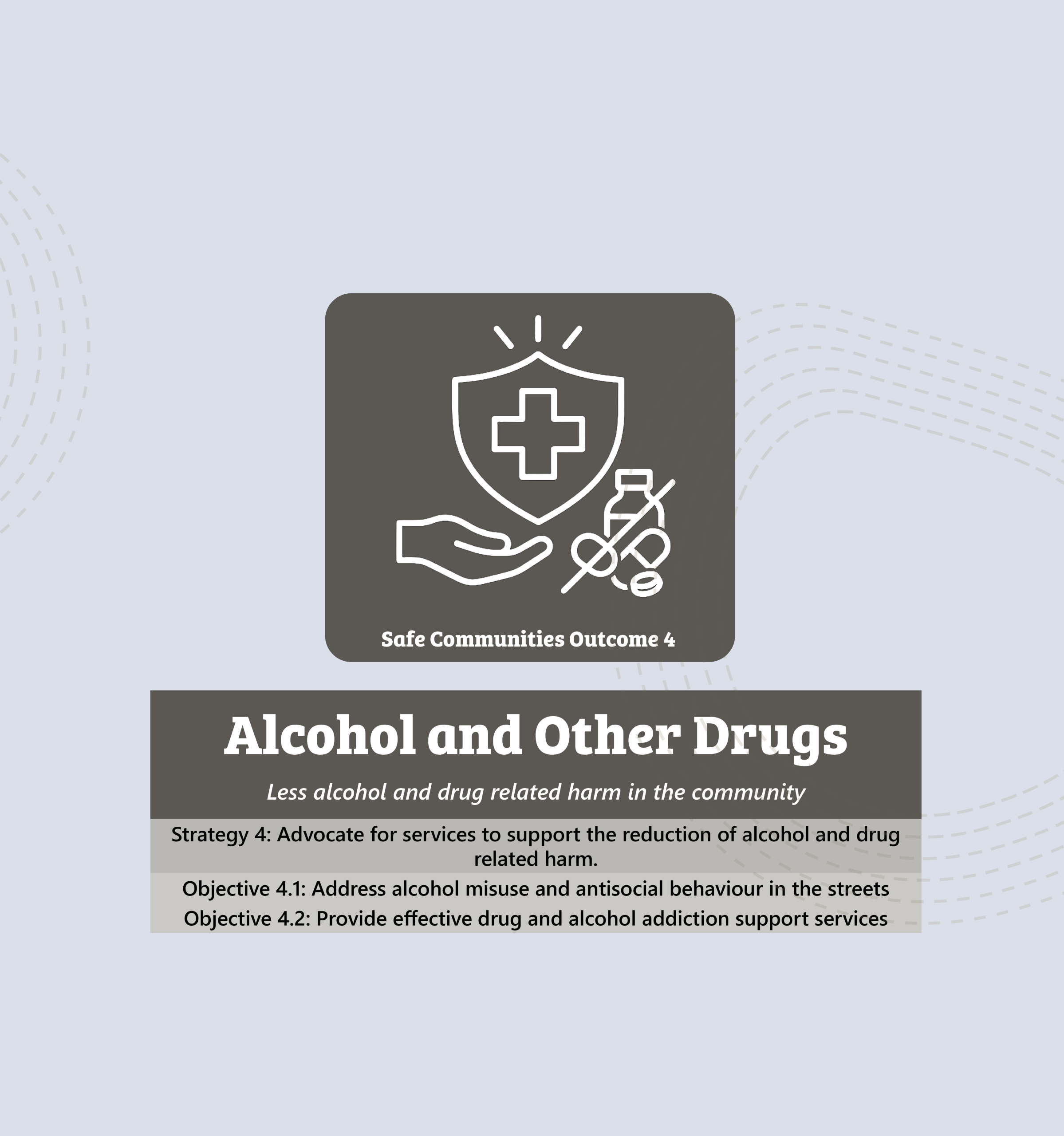 AOD-related harm affects the whole community. The social, economic, and cultural impacts are felt across families, workplaces, and public spaces. Reducing AOD-related harm is critical to improving both real and perceived safety in our community. This requires a balanced approach that combines prevention, early intervention, harm reduction, enforcement, and treatment.