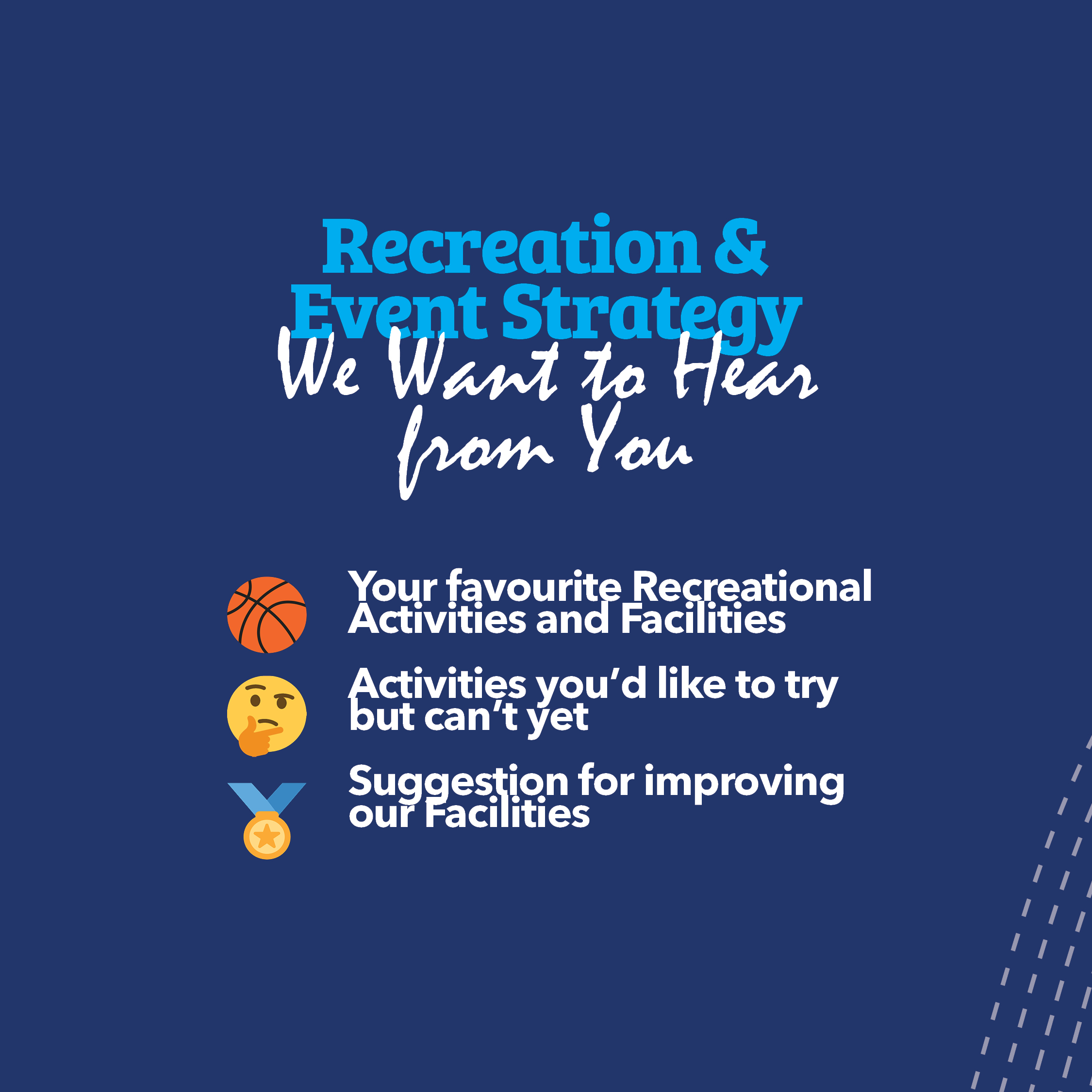 • What else can be done to improve recreation opportunities for residents?